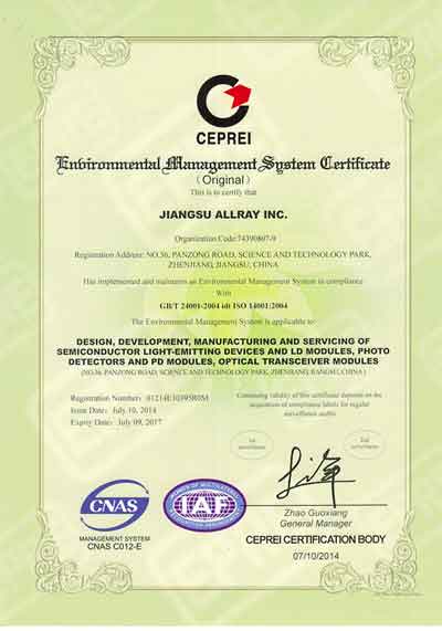 奧雷光電(AllRay)通過ISO14001環(huán)境管理體系認(rèn)證
