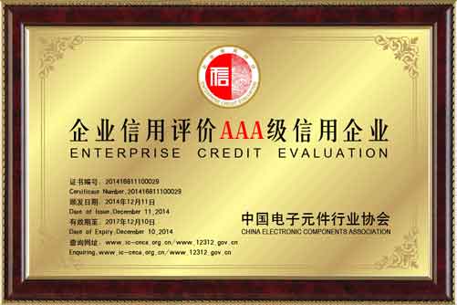該項信用評價工作是為了加強中國電子元件行業(yè)的誠信建設,推動行業(yè)自律,根據(jù)商務部、國資委有關部門相關文件的要求和精神,授權(quán)中國電子元件行業(yè)協(xié)會(以下簡稱“中電元協(xié)”)在全行業(yè)范圍內(nèi)組織開展的2014年度首批中國電子元件行業(yè)企業(yè)信用等級評價工作。信用評級從高到低共設AAA級、AA級、A級、B級、C級五個等級,評價內(nèi)容包括企業(yè)基礎信用能力、經(jīng)營能力、管理能力、財務實力、信用記錄五個方面。首批獲得3A級信用評價的企業(yè)共28家。