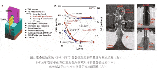 在國(guó)家科技重大專項(xiàng)02專項(xiàng)項(xiàng)目“16/14nm基礎(chǔ)技術(shù)”的支持下,微電子所在主流16/14nm全后柵高k金屬柵FinFET工藝技術(shù)研發(fā)上取得多項(xiàng)重要成果。十室殷華湘研究員的團(tuán)隊(duì)創(chuàng)新性提出了兩種納米線器件集成技術(shù):堆疊準(zhǔn)納米線器件(S-FinFET)技術(shù)和替代柵(RMG)中納米線溝道后釋放技術(shù),得到了業(yè)界的廣泛關(guān)注。