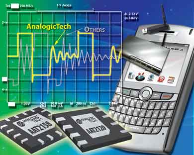 (產(chǎn)通社/深圳,11月13日訊)專為移動(dòng)消費(fèi)電子設(shè)備提供電源管理半導(dǎo)體器件的開(kāi)發(fā)商——研諾邏輯科技有限公司(AnalogicTech,納斯達(dá)克股票市場(chǎng)代碼:AATI) 日前宣布,推出業(yè)內(nèi)第一款專門針對(duì)低噪聲工作設(shè)計(jì)的開(kāi)關(guān)穩(wěn)壓器。基于一項(xiàng)正在申請(qǐng)專利的獨(dú)創(chuàng)性新架構(gòu),AAT2120和AAT2158同步降壓轉(zhuǎn)換器可提供比相競(jìng)爭(zhēng)的開(kāi)關(guān)穩(wěn)壓器低得多的頻譜噪聲和輸出紋波。這些低噪聲開(kāi)關(guān)穩(wěn)壓器采用了AnalogicTech針對(duì)高性能和高效率應(yīng)用開(kāi)發(fā)的第一代新型開(kāi)關(guān)穩(wěn)壓器拓樸技術(shù),更先進(jìn)的新型開(kāi)關(guān)穩(wěn)壓器拓樸技術(shù)目前也已在開(kāi)發(fā)之中。