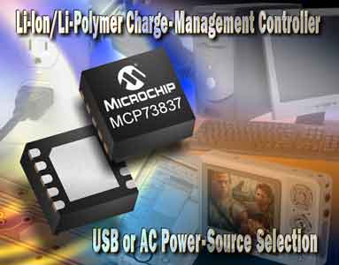 MCP73837/8:備自動USB或交流選擇的鋰離子/鋰聚合物電池充電器