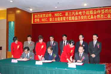 (產(chǎn)通社/深圳,12月13日訊)中國第一汽車集團公司的控股子公司——啟明信息技術股份有限公司與NEC電子的全資子公司——日電電子(中國)有限公司、日本RYOSAN的子公司香港菱三有限公司于啟明內建立聯(lián)合實驗室事宜達成協(xié)議,并宣布就開發(fā)車載用電子設備建立合作關系。該聯(lián)合實驗室成立后,啟明公司將使用NEC電子開發(fā)的汽車用半導體產(chǎn)品設計車用電子設備,并用于今后中國市場的新車型。