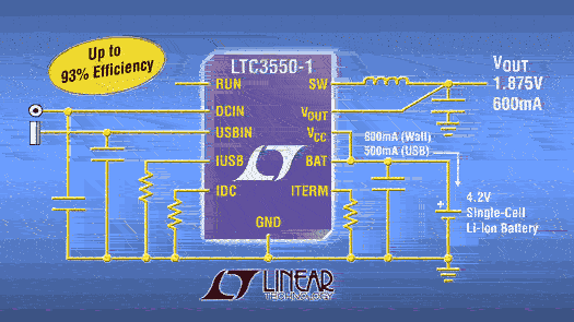 凌特公司(Linear Technology Corporation)針對手持應用于2月6日推出高效、緊湊的LTC3550-1電源管理解決方案。該解決方案將一個雙輸入鋰離子電池充電器和一個高效率同步降壓穩(wěn)壓器集成在一個扁平16引線3 x 5mm DFN封裝內。 LTC3550-1線性電池充電器可以自動選擇合適的電源,通過交流適配器或USB端口對單節(jié)鋰離子電池進行有效的充電。其獨立運行模式能夠簡化設計,無需為充電終止而加設外置微處理器。該充電器采用一種恒流/恒壓算法,利用交流適配器電源或USB電源分別可提供高達950mA或500mA的充電電流。不論在哪種情況下,最終浮動電壓的精度均為±0.6%。LTC3550-1電池充電器采用了一個專利的熱量調節(jié)方案,可以最大限度地提升充電率,而不會發(fā)生過熱現象。為保持電池的能量,它在待機狀態(tài)下從電池吸取<6μA的電量,而在停機時電流則<1μA。 LTC3550-1的集成同步降壓穩(wěn)壓器能夠提供高達600mA的持續(xù)輸出電流。它采用內置開關和僅為0.40Ω的RDS(ON),效率可高達93%,從而最大限度地延長電池的工作時間。此外,自動突發(fā)模式(Burst Mode)運行能夠優(yōu)化輕負載時的效率,靜態(tài)電流僅為20μA(停機狀態(tài)下<1μA)。該降壓穩(wěn)壓器采用恒定頻率電流模式架構,可在2.5V至5.5V的輸入電壓范圍內工作,是單節(jié)鋰離子或多節(jié)堿性或鎳氫電池輸入應用的理想選擇。它具有1.875V的固定輸出電壓,以及1.5MHz的高開關頻率,能夠使用高度不超過1mm的纖巧型低成本電容器和電感器。此外,該穩(wěn)壓器可與陶瓷電容器穩(wěn)定工作,從而產生很低的輸出電壓紋波。 采用緊湊型5 x 3 x 0.75mm DFN-16引線封裝的LTC3550-1有現貨供應。以1,000片為單位批量購買,每片起價為2.00美元。如需了解更多信息,請登錄www.linear.com.cn。 (完)