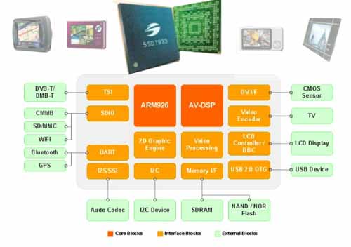 雙核心構(gòu)造:SSD1933的雙核心分配構(gòu)造經(jīng)專門優(yōu)化,除提供超卓表現(xiàn)外,與傳統(tǒng)單一中央處理器的方式相比,它在多媒體加速過程中的電力消耗極低。SSD1933的AV-DSP核心有助ARM核心承受運算要求高的多媒體處理作業(yè),以延長電池壽命,并讓中央處理器負責操作一般用途的應(yīng)用和操作系統(tǒng)的支持。