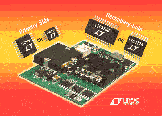 主端控制器LTC3705和LTC3725是正向驅(qū)動器。LTC3705是雙開關(guān)驅(qū)動器,而LTC3725是具單個開關(guān)運作的更簡單版本。副端集成電路LTC3706和LTC3726是具自啟動架構(gòu)的電流模式同步整流器。LTC3706適合多相工作,而LTC3726更簡單,并非常適用于單相工作。為了進(jìn)一步簡化設(shè)計,凌特公司采用了一種專有技術(shù),通過一個纖巧的脈沖變壓器對絕緣勢壘兩端的柵極驅(qū)動信號和DC偏置電源進(jìn)行多路傳輸。