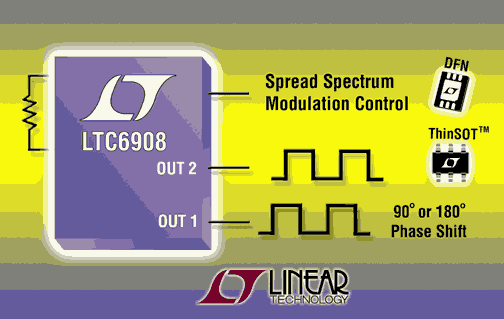 (2006年4月10日,北京)凌特公司(Linear Technology Corporation)推出為開關(guān)穩(wěn)壓器而優(yōu)化的纖巧擴(kuò)頻硅振蕩器LTC6908。LTC6908采用單個(gè)電阻,可編程至50kHz到10MHz的任何頻率。LTC6908有兩種配置,每種都具有雙路輸出。LTC6908-1的兩個(gè)輸出相位相差180o,而LTC6908-2的輸出相位則相差90o。 偽隨機(jī)擴(kuò)頻可簡單有效地降低EMI。如果開關(guān)帶寬是有限的,那么LTC6908調(diào)制速率還可以調(diào)整為3種設(shè)置之一。凌特公司設(shè)計(jì)部負(fù)責(zé)人Doug LaPorte說:“現(xiàn)在為開關(guān)提供擴(kuò)頻非常容易。用戶用一個(gè)電阻就可設(shè)置頻率和選擇調(diào)制速率。” LTC6908規(guī)格工作在-40oC至125oC的溫度范圍,具有與凌特公司硅振蕩器系列器件同樣出色的性能;在極限條件下能堅(jiān)固可靠地工作、可快速啟動(dòng)并具有低功耗。兩種配置的LTC6908都采用緊湊型6引線ThinSOT封裝和2mm x 3mm DFN封裝。LTC6908已全面投產(chǎn),以1,000片為單位批量購買,每片起價(jià)為1.65美元。如需了解更多信息,請登錄www.linear.com.cn。 (完)