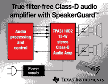 德州儀器TPA3110D2:真正的無濾波器15W立體聲D類音頻放大器
