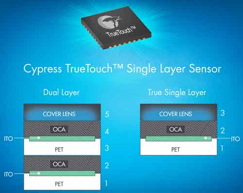 【產(chǎn)通社,5月24日訊】賽普拉斯半導體公司(Cypress Semiconductor Corp.;NASDAQ:CY)官網(wǎng)消息,其TrueTouch單層觸屏傳感器解決方案(代表產(chǎn)品CY8CTST241和CY8CTST242)可以替代電阻式觸屏,大幅提高電容式觸屏的性能,主要應用包括手機、數(shù)碼相機、GPS系統(tǒng)、和其他移動電子設備。