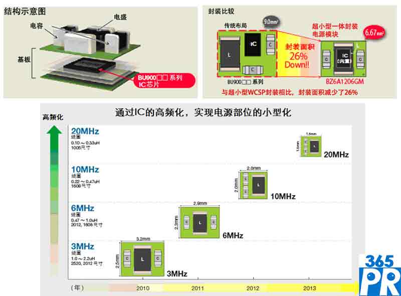 BZ6A系列將6MHz動作的高速開關(guān)電源IC BU9000X系列內(nèi)置于基板,同時,將所需零部件封裝于一體。不僅保持了產(chǎn)品的高性能,而且實現(xiàn)了業(yè)內(nèi)最小尺寸的超小型電源模塊。由于不再需要外置零部件,因此,簡化了開關(guān)電源電路的設(shè)計的同時使超小型化、高密度封裝成為可能,為縮短各種設(shè)備的開發(fā)周期做出了巨大貢獻。