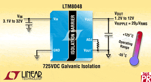 兩款器件都在3.1V至32V的輸入電壓范圍內(nèi)工作,在副端提供穩(wěn)定的輸出電壓,而且輸出電壓在2.5V至12V (LTM8047)和1.2V至12V (LTM8048)范圍內(nèi)可調(diào)。