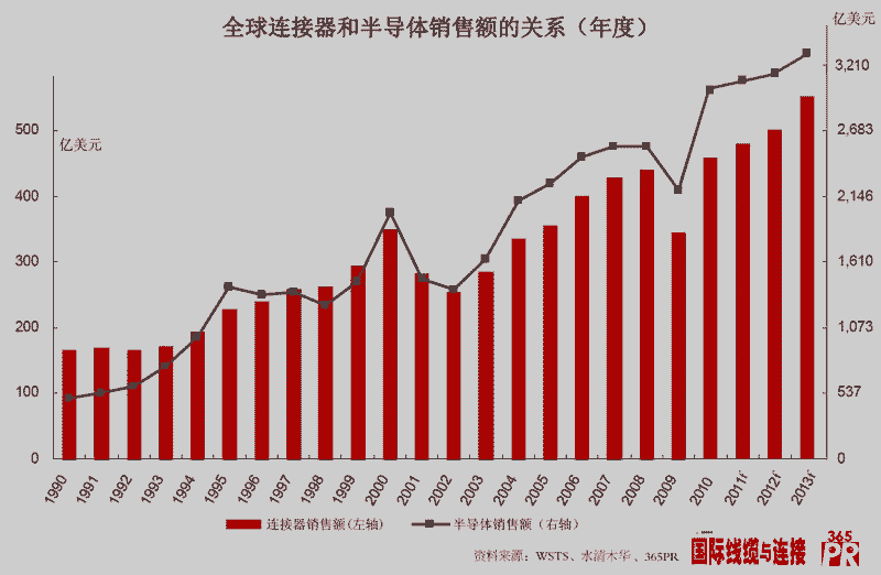 【產(chǎn)通社,12月27日訊】作為類(lèi)似于電阻器、電容器、電感器的最大單一被動(dòng)組件市場(chǎng),互連行業(yè)將在2011年取得中等個(gè)位數(shù)增長(zhǎng),實(shí)現(xiàn)480億美元左右的年銷(xiāo)售收入,再創(chuàng)歷史新高!同時(shí),2011年亦是全球互連行業(yè)最值得記憶的一年,中國(guó)互連企業(yè)開(kāi)始高速發(fā)展,全球互連產(chǎn)業(yè)也開(kāi)始轉(zhuǎn)變“增長(zhǎng)模式”。
