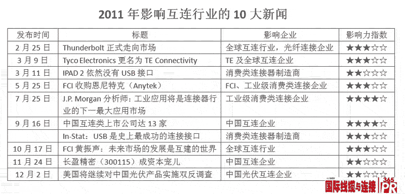 2011年影響互連行業(yè)的10大新聞