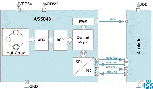 【產(chǎn)通社,4月18日訊】奧地利微電子公司(SIX股票代碼:AMS)官網(wǎng)消息,其AS5048 14位磁性編碼器芯片可為基于單片機(jī)的應(yīng)用帶來比以往更方便的精確、可靠的角度測(cè)量。