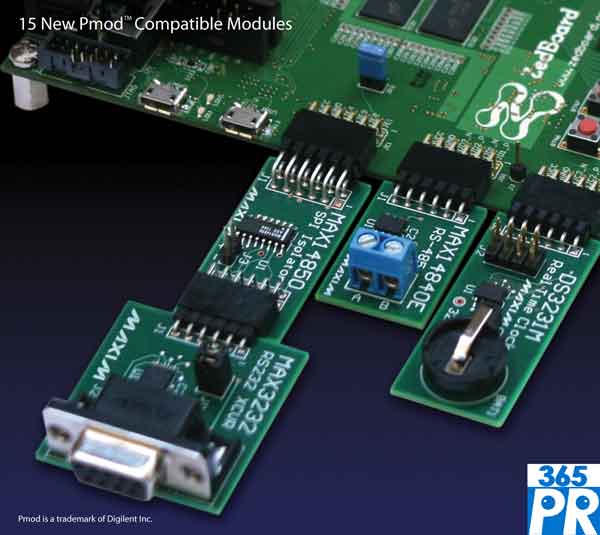 【產(chǎn)通社,7月4日訊】Maxim Integrated Products (NASDAQ: MXIM)官網(wǎng)消息,其最新推出的15個外設(shè)模塊套裝能夠直接插入符合Digilent Pmod標準的任意FPGA/CPU擴展端口,簡單的連接操作和便利的軟件集成可加速原型開發(fā)進度,實現(xiàn)從概念至設(shè)計方案的快速移植。這套模塊的價格極具競爭力,即使在預(yù)算最緊張的情況下,也可以采用先進的高性能IC進行方案測試。
