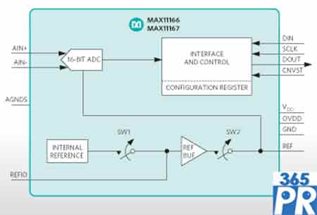 Maxim MAX11166/7高集成16位ADC適用于高精度測量
