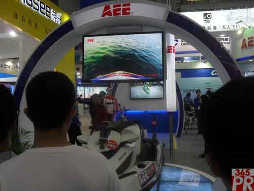 AEE的運(yùn)動(dòng)攝像機(jī)可應(yīng)用在越野車(chē)、賽車(chē)、摩托車(chē)、自行車(chē)、滑板、沖浪、摩托艇等一系列運(yùn)動(dòng)場(chǎng)景,展臺(tái)上播放的精彩運(yùn)動(dòng)視頻都是由AEE運(yùn)動(dòng)攝像機(jī)拍攝的。(Lisa WU)