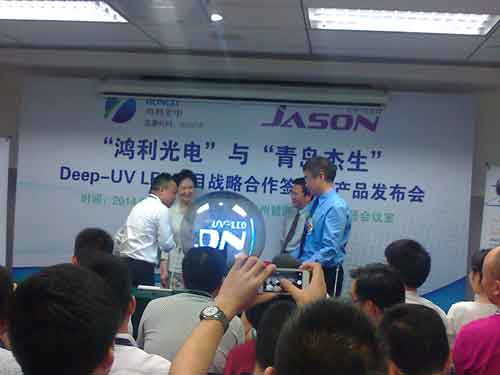 鴻利光電6月10日與國(guó)內(nèi)唯一DEEP-UV深紫外LED提供商青島杰生的強(qiáng)強(qiáng)聯(lián)手,舉辦了“DEEP-UV LED項(xiàng)目戰(zhàn)略合作簽約暨產(chǎn)品發(fā)布會(huì)”,與觀眾分享了UV LED紫外全波段的封裝方案、應(yīng)用方案、以及市場(chǎng)趨勢(shì)等。