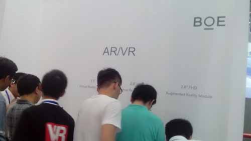 本屆展會上,VR展商陣容龐大,除了影院般的VR體驗中心,產(chǎn)業(yè)鏈企業(yè)也不少,如深圳樂元成光電的VR攝像機及頭盔,神顯科技的裸眼3D顯示產(chǎn)品,BOE(京東方)的首款A(yù)R/VR顯示屏等。其中,BOE推出的首款A(yù)R/VR顯示屏擁有高達1600PPI的超高像素密度,是市面上主流高端手機分辨率(FHD)的4倍,遠超市面上現(xiàn)有的其余同類產(chǎn)品,可為用戶完美呈現(xiàn)虛擬顯示的視界,因此吸引了不少行家駐足。