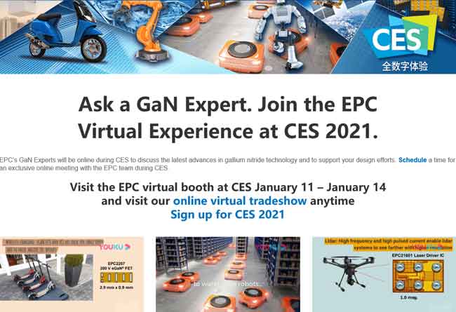 【產(chǎn)通社,1月14日訊】【產(chǎn)通社,5月24日訊】宜普電源轉(zhuǎn)換公司(Efficient Power Conversion Corporation,EPC)官網(wǎng)消息,其專家團(tuán)隊(duì)將在CES上的EPC虛擬展位,討論最新GaN技術(shù),為用戶的設(shè)計(jì)提供支持。 查詢進(jìn)一步信息,請(qǐng)?jiān)L問(wèn)官方網(wǎng)站 http://epc-co.com/epc/cn/項(xiàng)目及最新消息/CES2021.aspx。(Lisa WU, 365PR Newswire) (完)