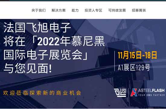 【產(chǎn)通社,10月9日訊】環(huán)旭電子股份有限公司(Universal Scientific Industrial Shanghai;股票代碼:601231)官網(wǎng)消息,其旗下子公司——法國飛旭電子即將參加2022年慕尼黑國際電子!這是一個(gè)好機(jī)會(huì)來充分了解環(huán)旭電子與法國飛旭電子如何攜手合作展現(xiàn)出1+1>2的服務(wù),歡迎前往A1展區(qū)129號。Messe München位于德國慕尼黑,本次展覽會(huì)將于2022年11月15日至18日盛大舉行! electronica可謂是電子產(chǎn)業(yè)每年最大的商業(yè)展覽會(huì)。展會(huì)中囊括了整體產(chǎn)業(yè)供應(yīng)鏈的上下游,從全球一線品牌到初創(chuàng)企業(yè),到場參觀的企業(yè)能快速尋得所需的合作伙伴和取得商機(jī)情報(bào),現(xiàn)場也有多場行業(yè)趨勢論壇。 查詢進(jìn)一步信息,請?jiān)L問官方網(wǎng)站 http://www.usiglobal.com/cn/news/electronica-2022。(張怡,產(chǎn)通發(fā)布) (完)