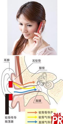 通常,揚聲器等發(fā)出的聲音是經(jīng)空氣從耳孔進入再傳遞給鼓膜的。另外,很早人們就發(fā)現(xiàn)的骨傳導是傳導到骨骼的振動直接傳到內耳。