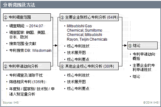 ·主要企業(yè)專利:64件(Mitsubishi Gas Chemical, Sumitomo Chemical, Mitsubishi Rayon, Teijin Chemicals)